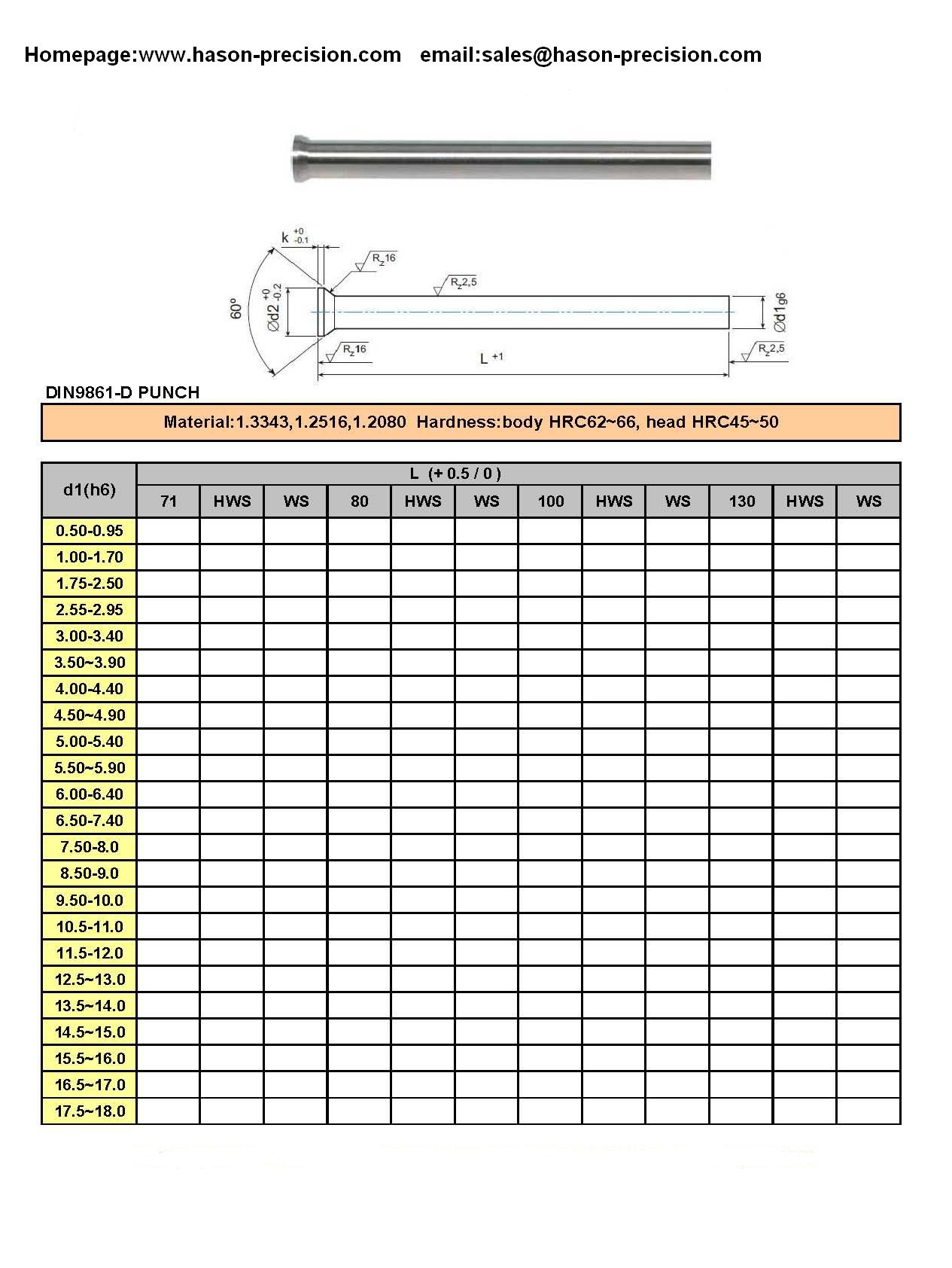 Hardness: Head:HRC45-50, Shaft: HRC62-66