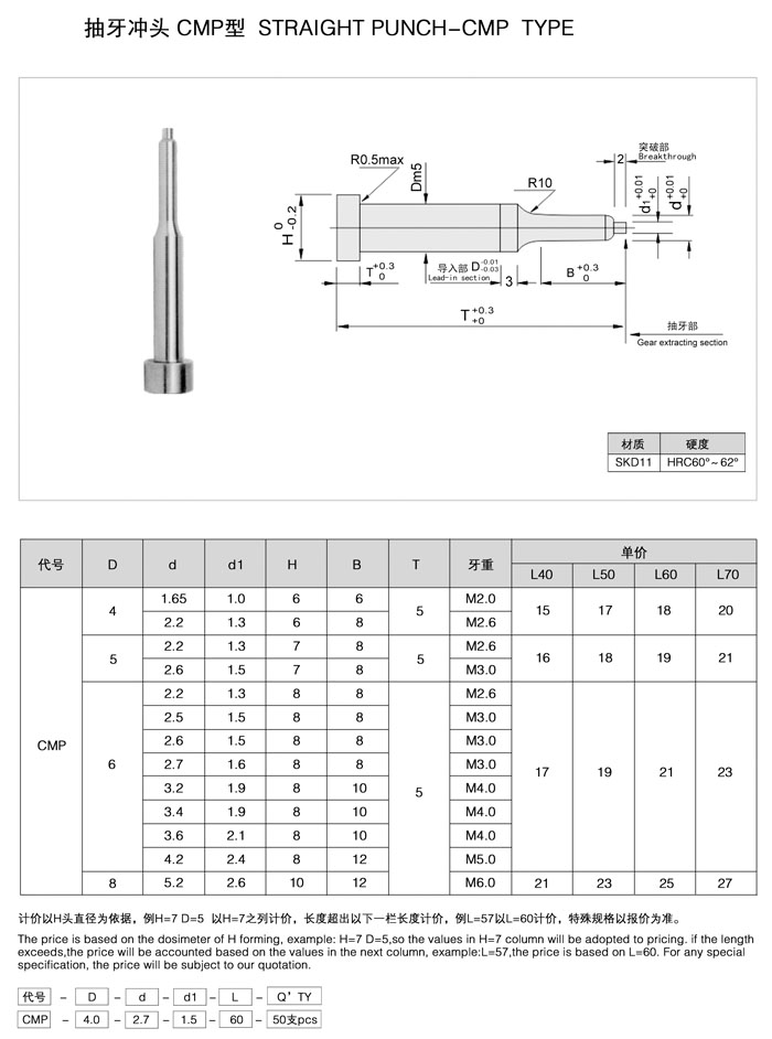 Hardness: Head:HRC45-50, Shaft: HRC62-64
