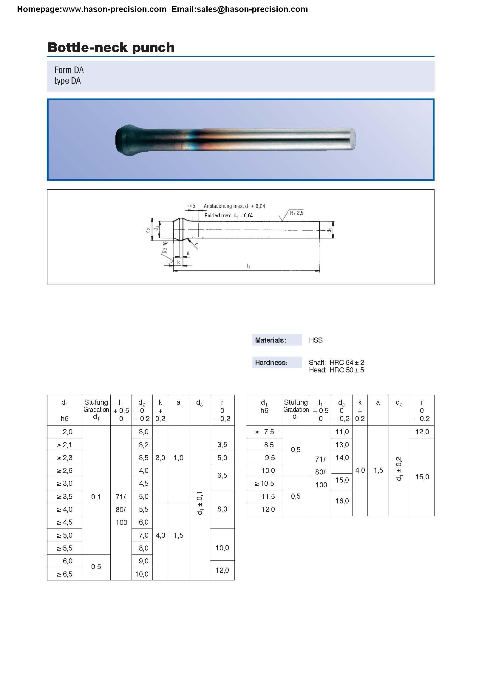 Hardness: Head:HRC45-50, Shaft: HRC62-66