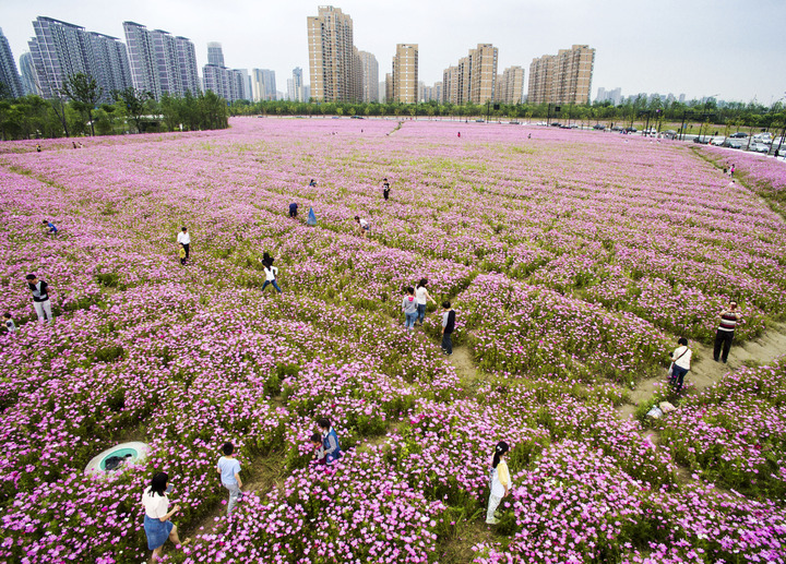 新城营造出一片广袤的花海,美不胜收。